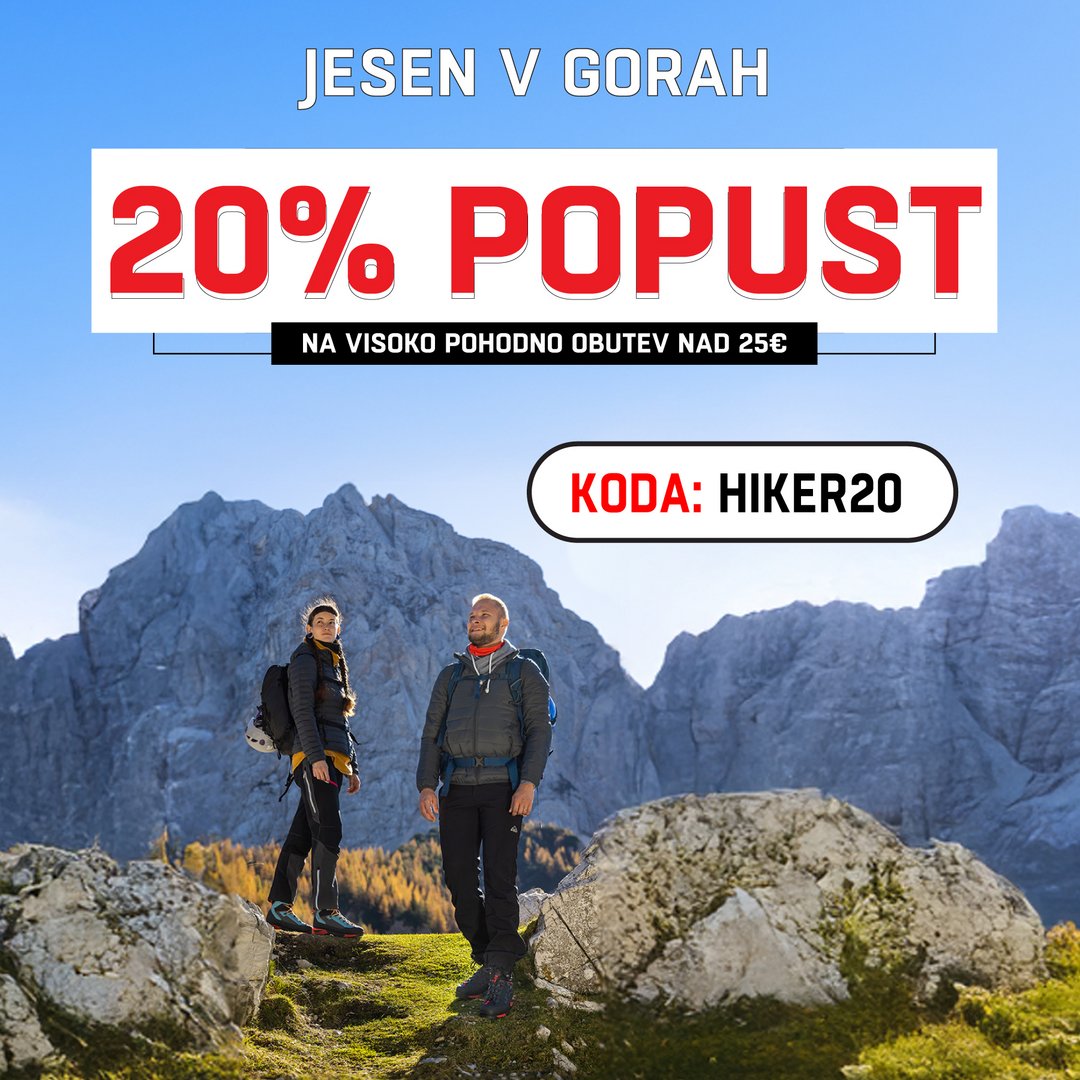 Ob nakupu nad 25 € vas s kodo: HIKER20 čaka dodatni 20 % popust na izbrano visoko pohodno obutev.